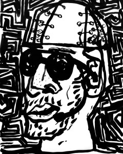 A work accident meant a stay in hospital in 2017 and series of operations to rebuild the wrist of his drawing hand. Learning to draw with the other hand he completed a series of ink drawing and paintings whilst undergoing treatment that were exhibited in late 2017.